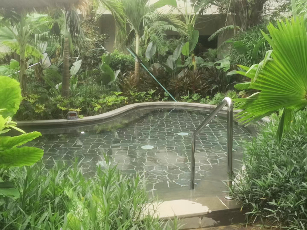 调试的泳池分成人与儿童区,可满足不同年龄段游泳需求;配套有天然温泉,未来将与泳池形成 “泳养 + 泉疗” 康养组合。